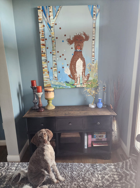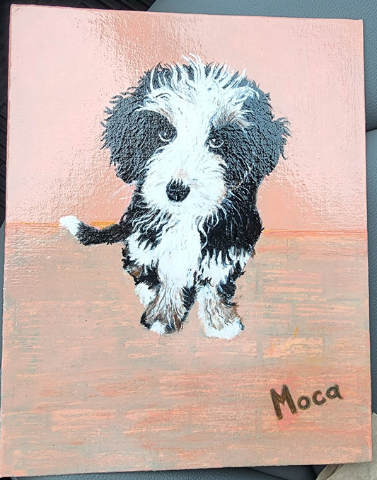 Celebrate your beloved pet with a hand-painted canvas featuring a whimsical background of your choice. Each portrait is thoughtfully crafted to capture your pet’s unique personality and charm, creating a one-of-a-kind keepsake you’ll treasure forever.